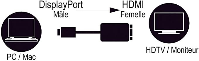 | Premier connecteur | DisplayPort Mâle Audio/Vidéo numérique |