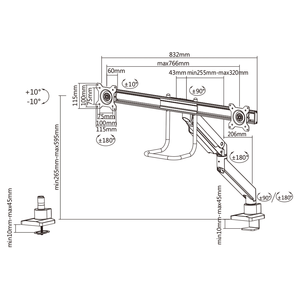 | Angle de pivotement | 360° |